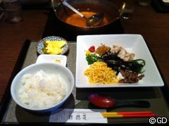 ごはんに様々な薬味を乗せて、鶏スープを注いで食べる、とてもシンプルな料理なのですが、これがとても美味しいのです。